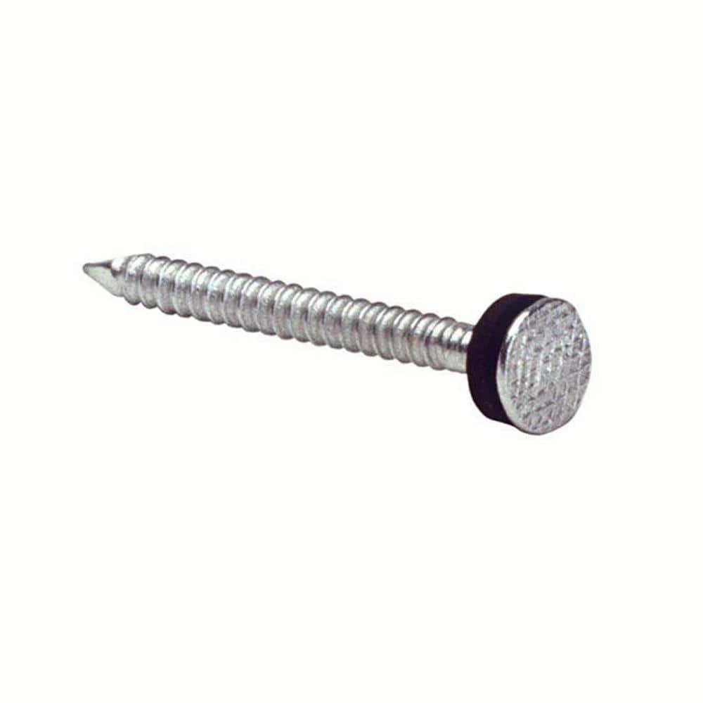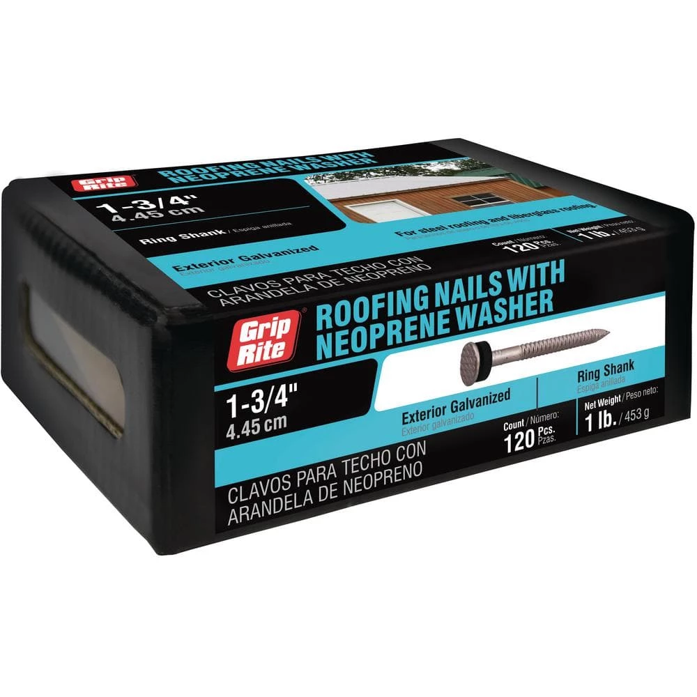 These Grip-Rite nails are used when installing metal or fiberglass roofing. They come with a neoprene washer to effectively seal against water. These nails have a sharp point for piercing the metal roofing while driving the nail.