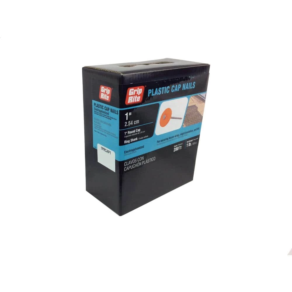 The Grip-Rite plastic cap nail is used for installing roofing felt to a roofing deck. In addition, these plastic cap nails can be used to install foam board insulation. The plastic cap nails are electro-galvanized for rust and corrosion resistance.