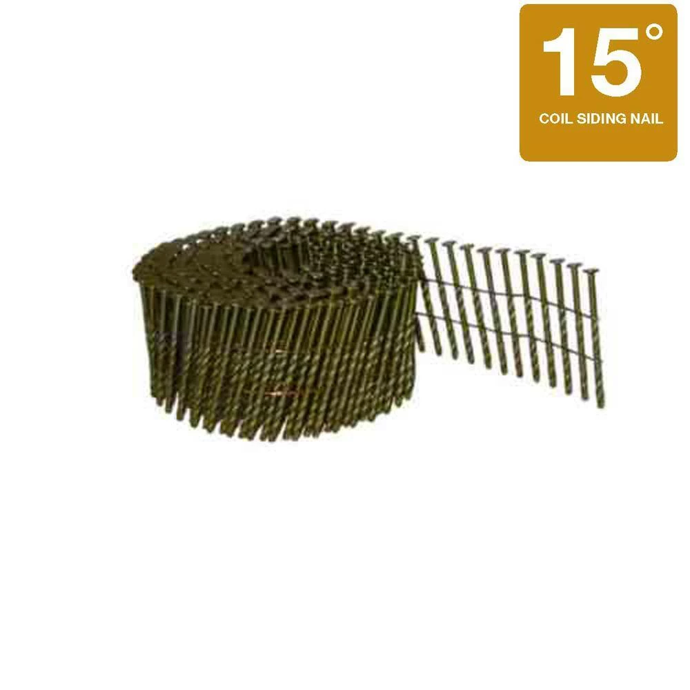 These 2-3/16 in. x 0.099 in. 15-Degree Wire Collated Coil Nails have a blunt diamond point for reduced splitting, a screw shank for increase holding power, and work in most 15-Degree Wire Weld Coil Framing and many coil Siding Nailers (check tool specs). These are designed for pallet construction, sheathing, light framing, and other applications where corrosion is not a problem.
