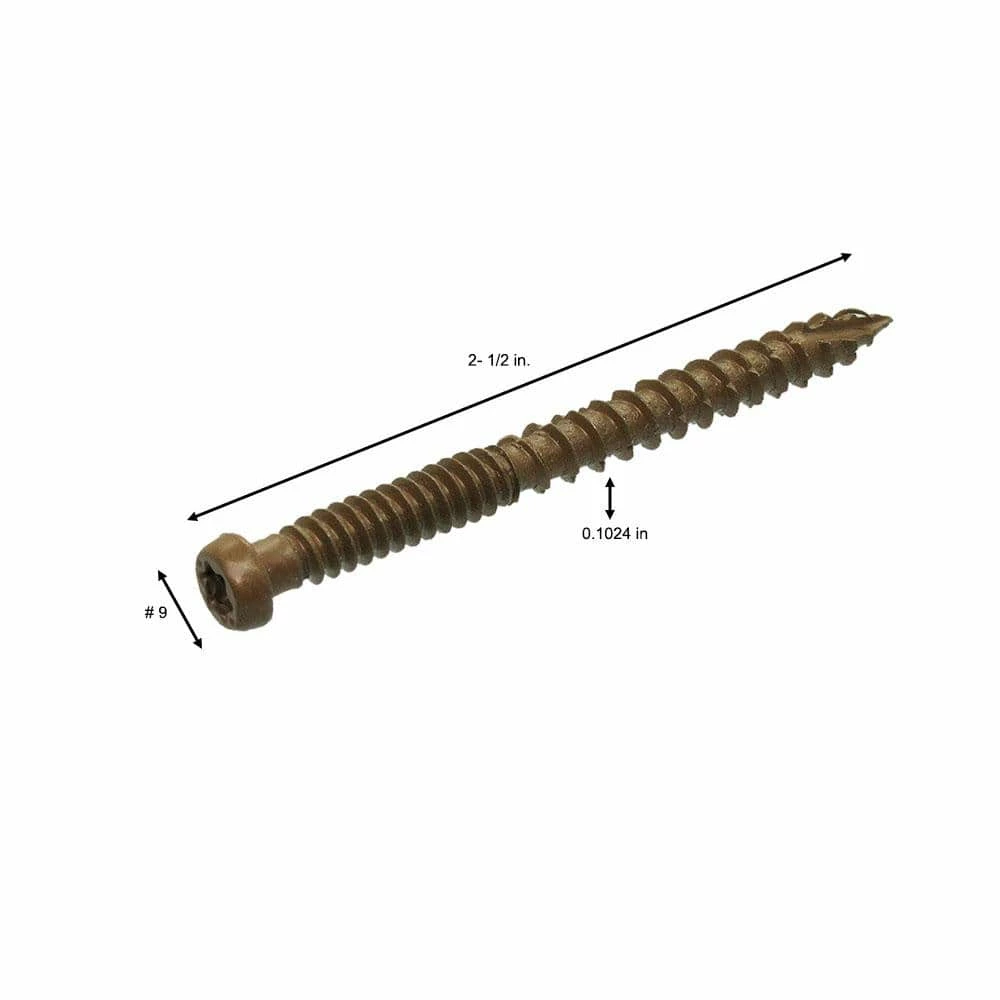The Deckmate 2-1/2 in. Gray Polymer-Plated Steel Star Drive Composite Deck Screws are ideal for use with poly or composite lumber. Make the most of your outdoor project with Deckmate brand exterior screws. The pancake head reduces over-driving and mushrooming while leaving a smooth finish. Type 17 point reduces need for pre-drilling; refer to board manufacturer’s instructions as some pre-drilling may be required. The unique dual-thread design pulls fibers down, leaving a smooth finish.