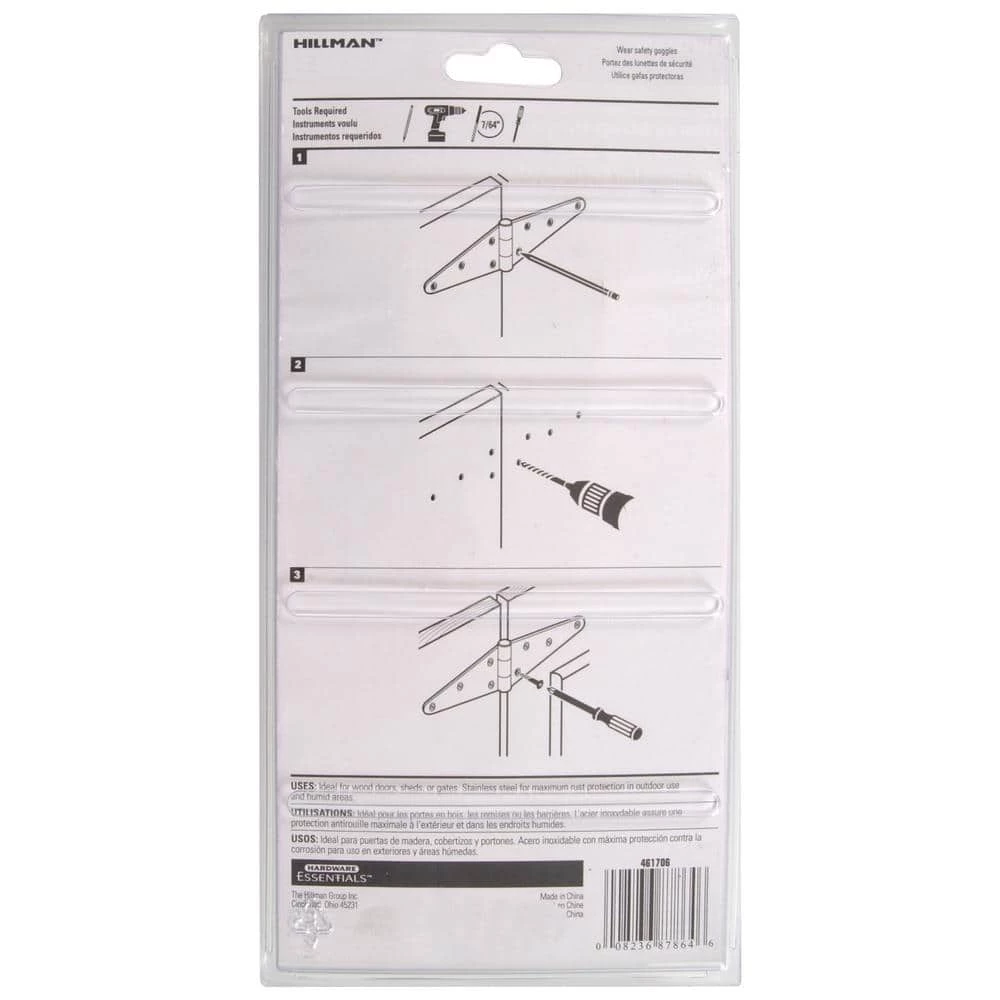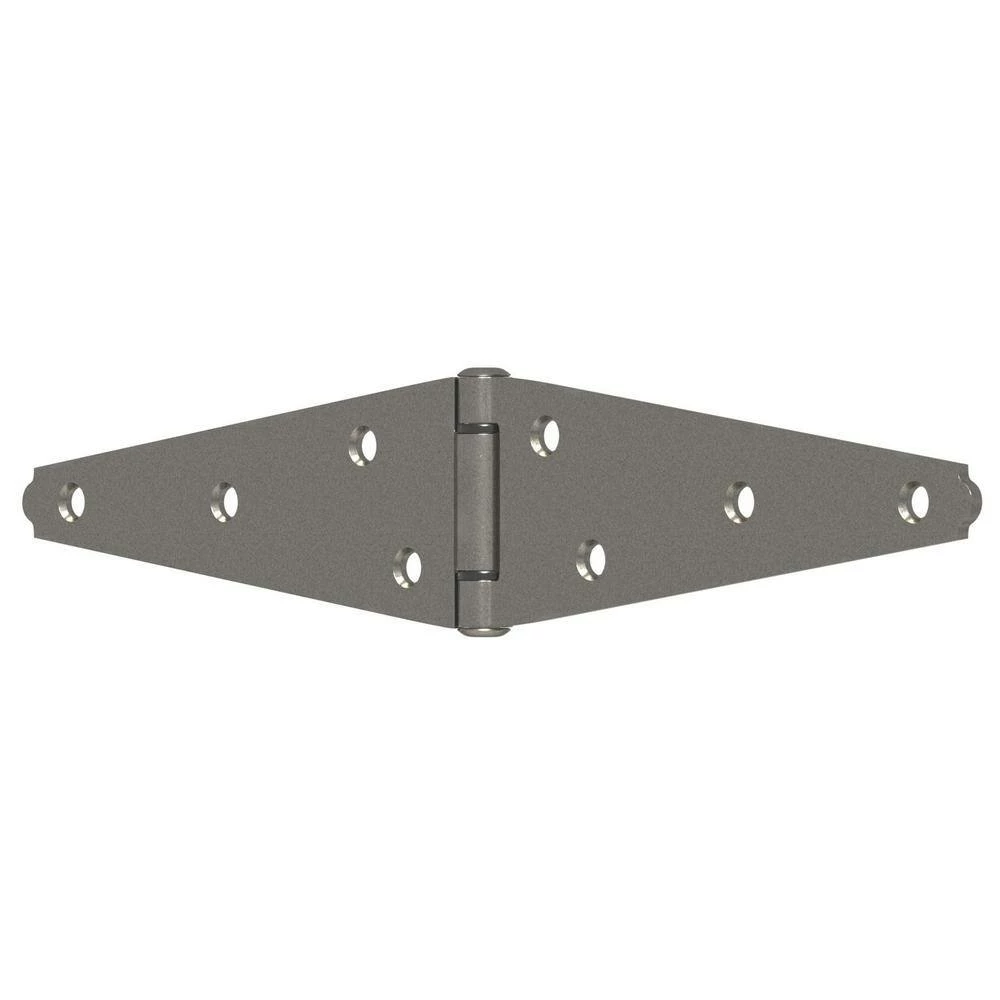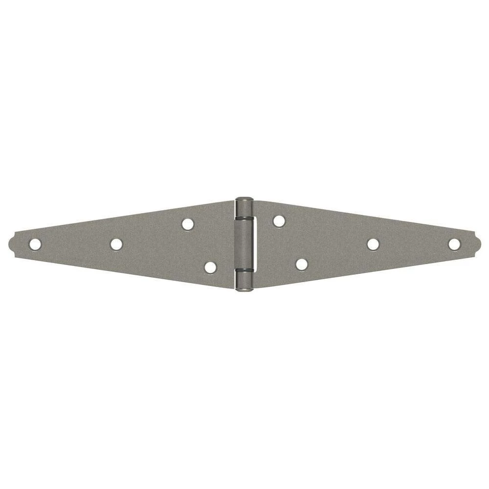 “Support your doors easily with this five-pack of Hardware Essentials heavy strap hinges. The offset screw holes are spaced to offer strength and prevent wood splitting for a seamless set-up, while the stainless steel construction provides resistance against corrosion. These Hardware Essentials heavy strap hinges have a 6-inch length on each side to spread out stress evenly on the mounting surface, and the reversible design offers compatibility with left or right hand installations.”