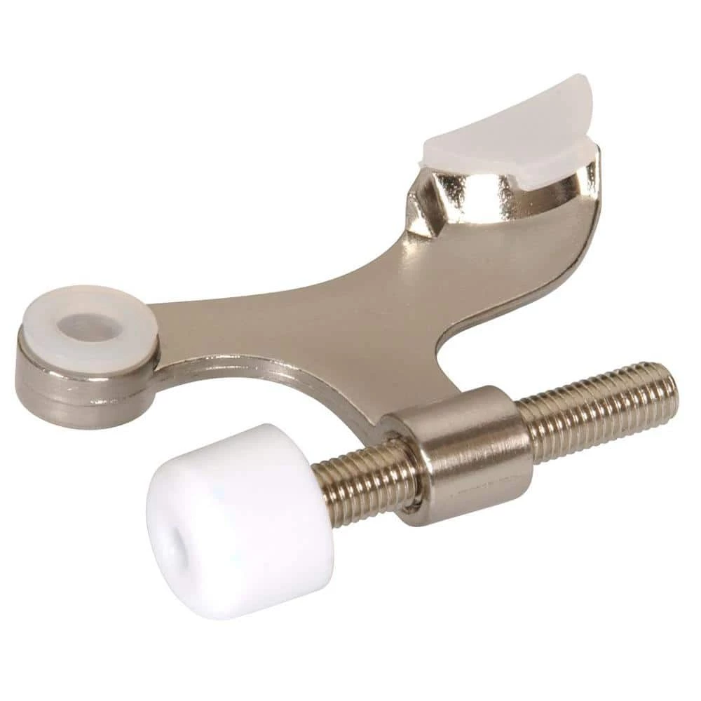 The Hinge Pin Door Stop for Hollow Core Doors is designed to mount on a door hinge to prevent the door knob from contacting and damaging the wall. The self-adjusting bumper makes full contact with the door jamb to prevent any damage to the door or wall. The oversized bumper is intended to contact the door; it prevents damage to hollow core doors by providing a large bearing surface.